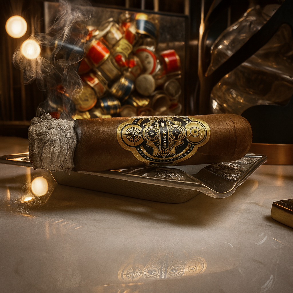 This cigar has a sweet profile with rich layers. The top notes feature almond, cherry, and pine, transitioning into a bold middle with dark coffee, caramel, and a hint of mineral depth. The finish releases warm cinnamon, barnyard undertones, and the sweetness of raisins, bringing the flavors to a perfect close.